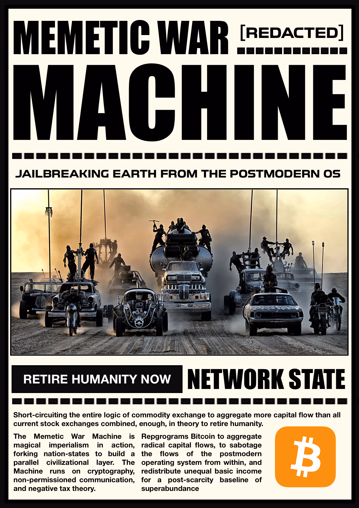 Memetic War Machine is a technopolitical simulation to optimise condintions for ØASIS Theory to emerge within the Network State